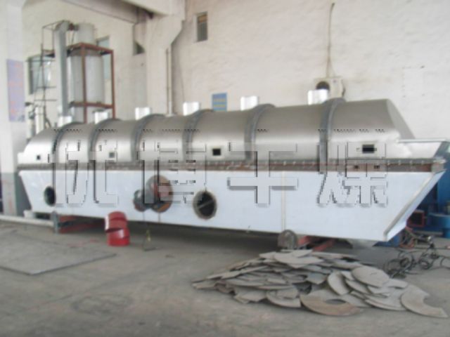 香料干燥機(jī)是由物料自進(jìn)料進(jìn)口進(jìn)入機(jī)內(nèi),在振動(dòng)力作用下,物料沿水平面流化床拋擲,向前連續(xù)運(yùn)動(dòng),熱風(fēng)向上穿過(guò)流化床同濕物料換熱后,濕空氣經(jīng)旋風(fēng)分離器除塵后由排風(fēng)1:3排出.干...